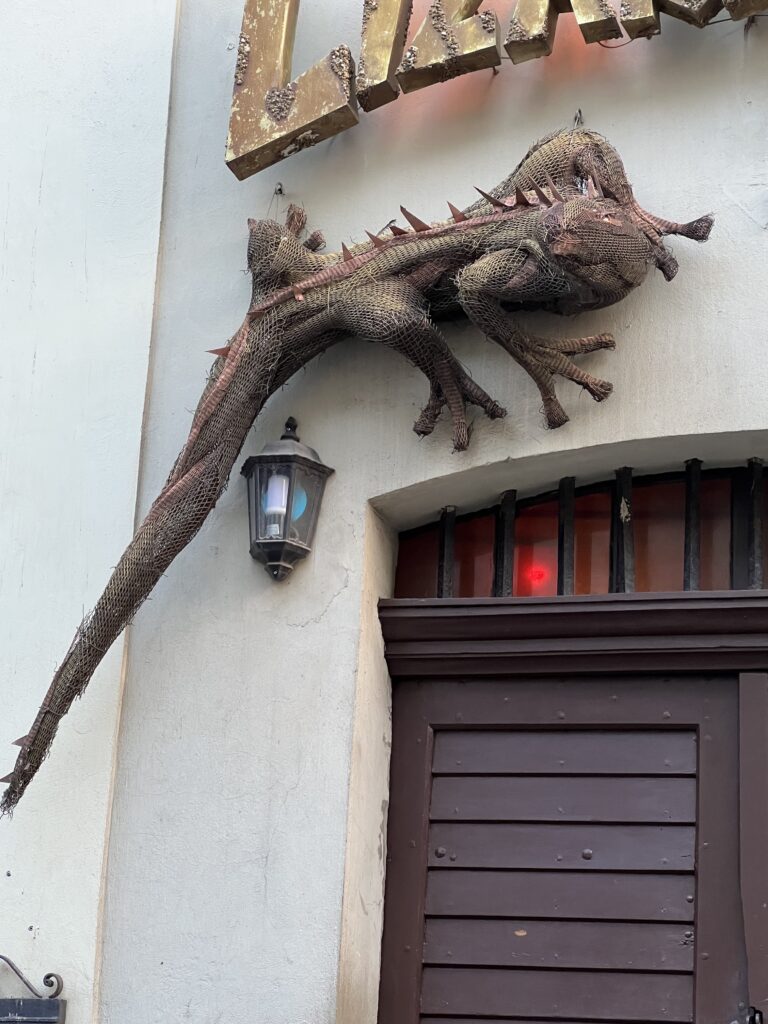 Einant Vyslos kryptimi, pastebime turistų padaugėjimą. Kuo jie čia domisi? Ogi aptvertas, kad nepabėgtų, žemai palei namo sieną įsikūręs legendinis drakonas. Tai viena Torunės legendų.