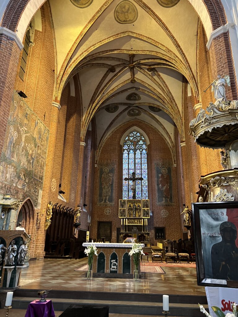 Praėjus pro auksinę asilo skulptūrą, netoli ir Šv. Jonų bažnyčia. Pradėta statyti 1260 metais didinga gotikinė bažnyčia, dabar yra katedra. Turi aukštą bokštą, stovi arčiau upės, tad iš čia daug matosi. Jame antras pagal dydį Lenkijoje varpas. Čia buvo krikštytas M. Kopernikas.