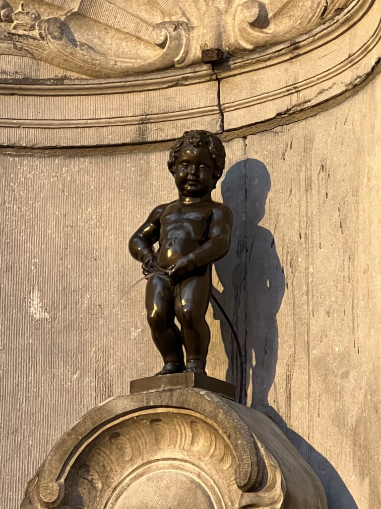 Besišlapinantys garsina Briuselį. Garsiausias berniukas. Jis yra garsiausias Briuselio gyventojas. Turi daug šimtų kostiumų. Įvairiomis progomis perrengiamas. Jis kažkada šlapimu užgesino mažą gaisrą, dėl to nesudegė Briuselis. Kaip atsvara berniukui 1987 metais akligatvyje atsirado Jeanneke Pis,- besišlapinanti mergaitė. Labai maža,- 50 cm dydžio skulptūra. Zinneke- Pis yra besišlapinantis šuo. Jį radau 2 gatvių sankryžoje netoli viešbučio. Jis sukurtas 1999 metais.