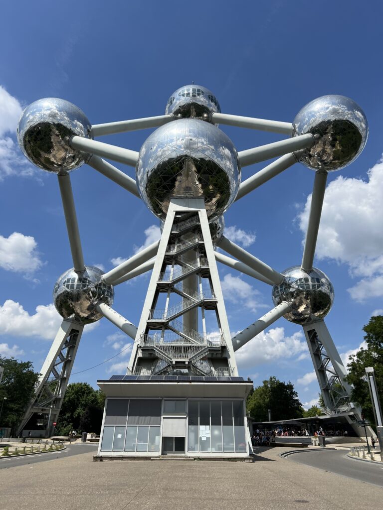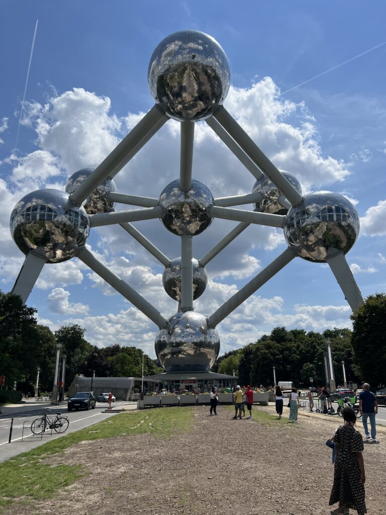 Atomiumas pastatytas 1958 metais pasaulinei parodai. Tai naujas Briuselio simbolis. Atvaizduotas geležies atomas, padidintas 160 milijardų kartų. 102 metrų aukščio, sudarytas iš 9 rutulių, kurių skersmuo 18 metrų. Juos jungia metaliniai vamzdžiai su labai greitais liftais. Vamzdžių ilgiai po 23 metrus, skersmenys- 3,30 metro. Tai tikrai monumentalus kūrinys. Jis matosi iš toli. Fotogeniškas iš visų pusių. Randasi šiaurinėje miesto dalyje, Heizelio rajone. Atomiumas tapo viso XX amžiaus simboliu, ne tik Briuselio. Nes atomo sandara ir jos panaudojimas išvystytas praėjusiame amžiuje.