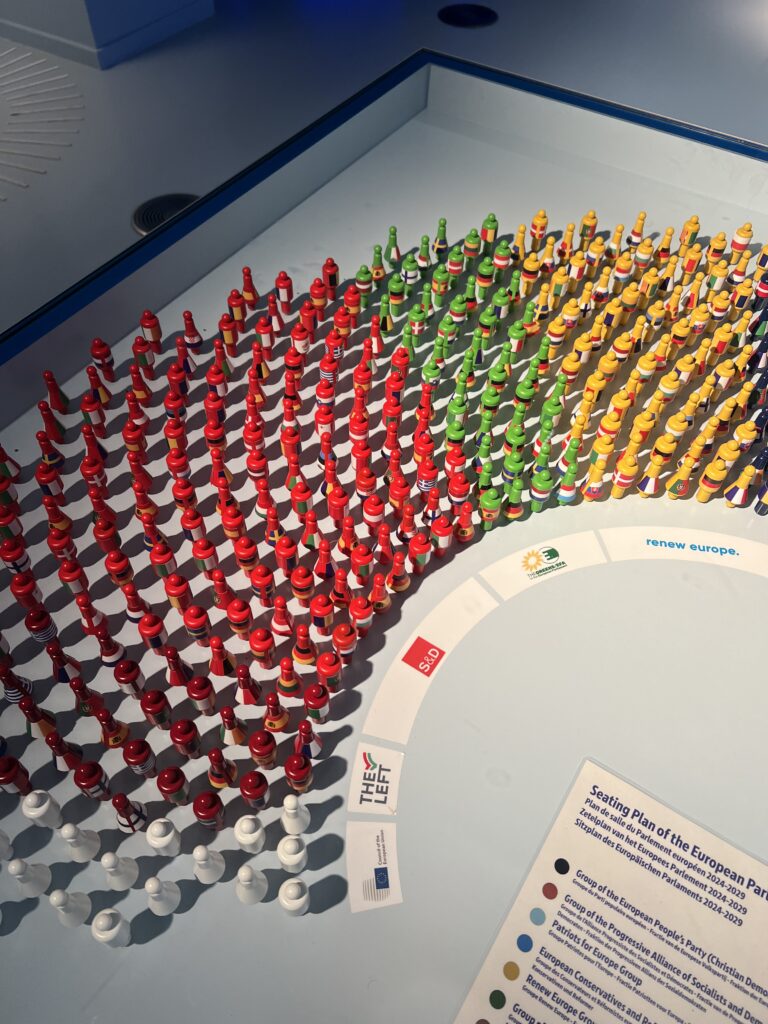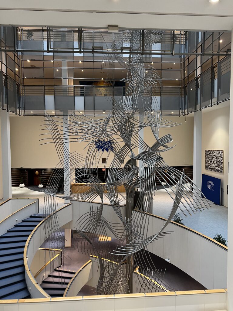 Europos Parlamentas. Briuselis yra ES sostinė (viena iš sostinių). Todėl jame yra EP pastatai. Tai lyg miestas mieste. Vaikščiojau tarp jo stiklinių pastatų, klaidžiojau. Bet radau daugiau nei buvau planavęs aplankyti. Pirmiausia aplankiau Pusratį. Čia patenkama su iš anksto įsigytais nemokamais bilietais. Einant pastato vidumi, pastebiu mūsų trispalvę, užrašą ant sienos lietuviškai. Lankantis posėdžiai nevyko, nes buvo tarpas tarp baigusių kadenciją ir naujų EP narių. Salėje vyko remontas. Turistai buvo dideliame balkone. Matėme visų ES kalbų vertėjų patalpas tuščias.